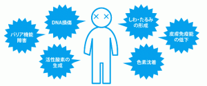 無防備な肌で紫外線を浴びてしまうと、皮膚の中で活性酸素がいっぱい出てきて